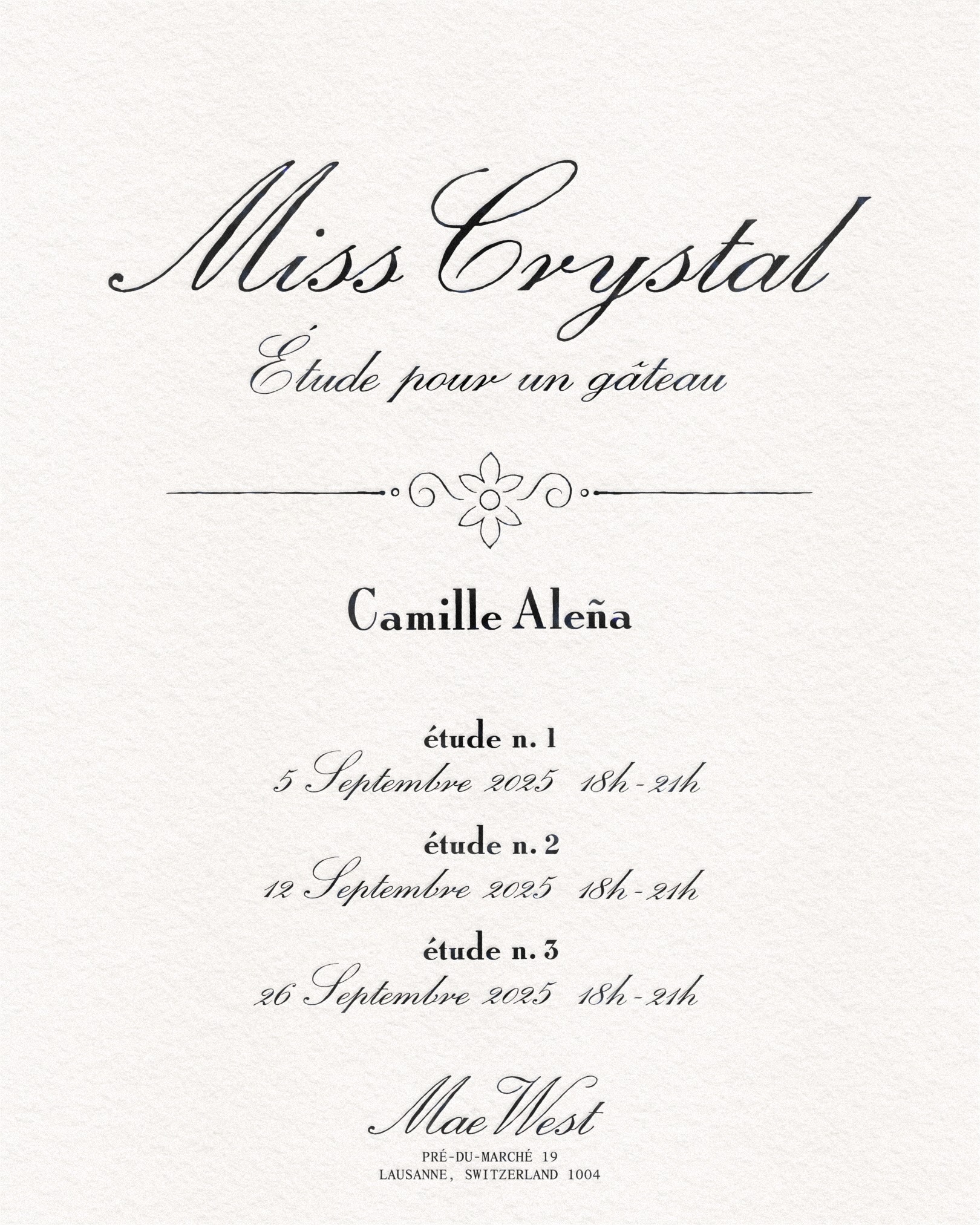 Poster for Mae West's September 2025 exhibition: Miss Crystal by Camille Aleña