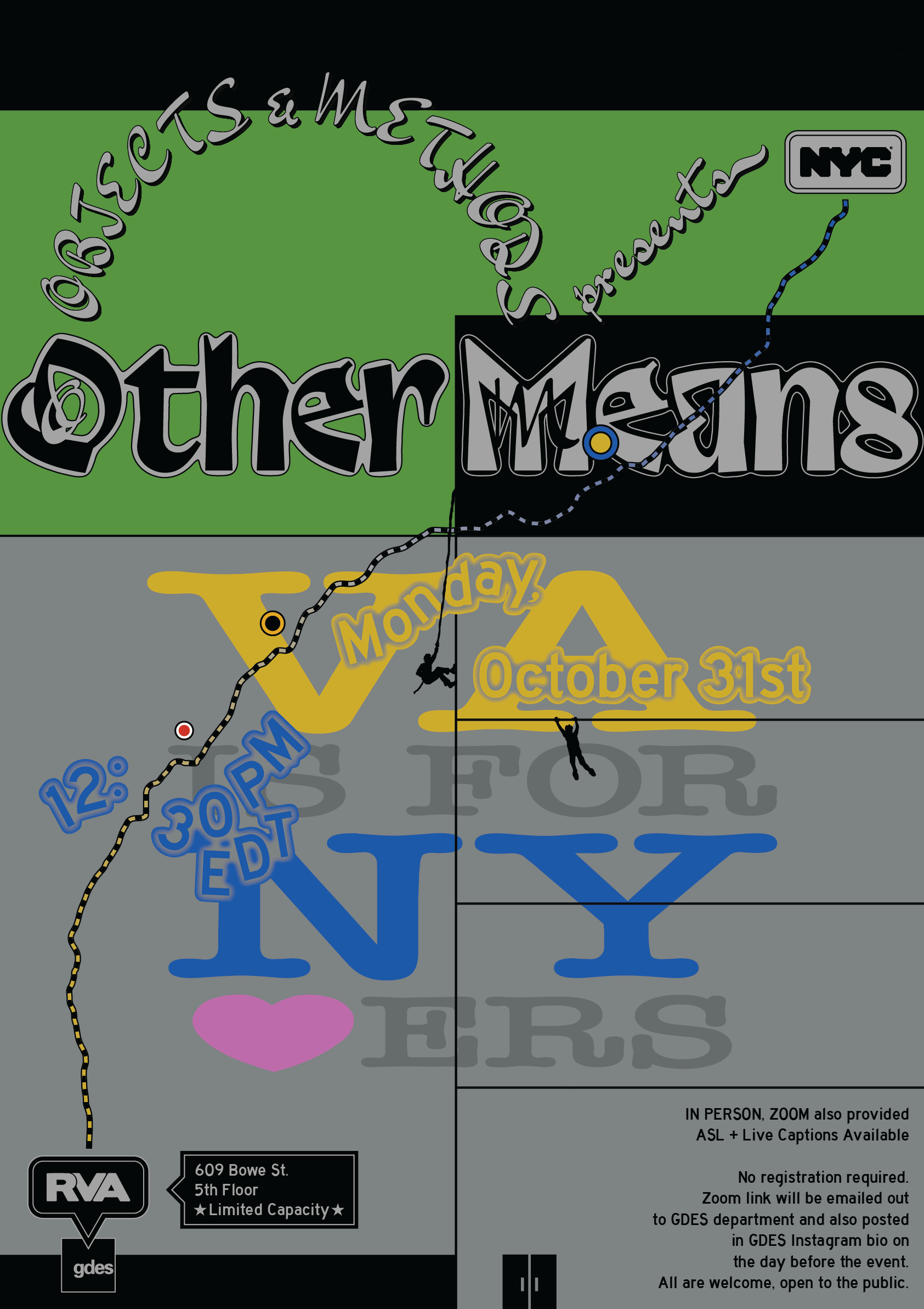 Poster for lecture given by Other Means at the 609 Bowe St. Auditorium in Richmond, Virginia on October 31st, 2022.